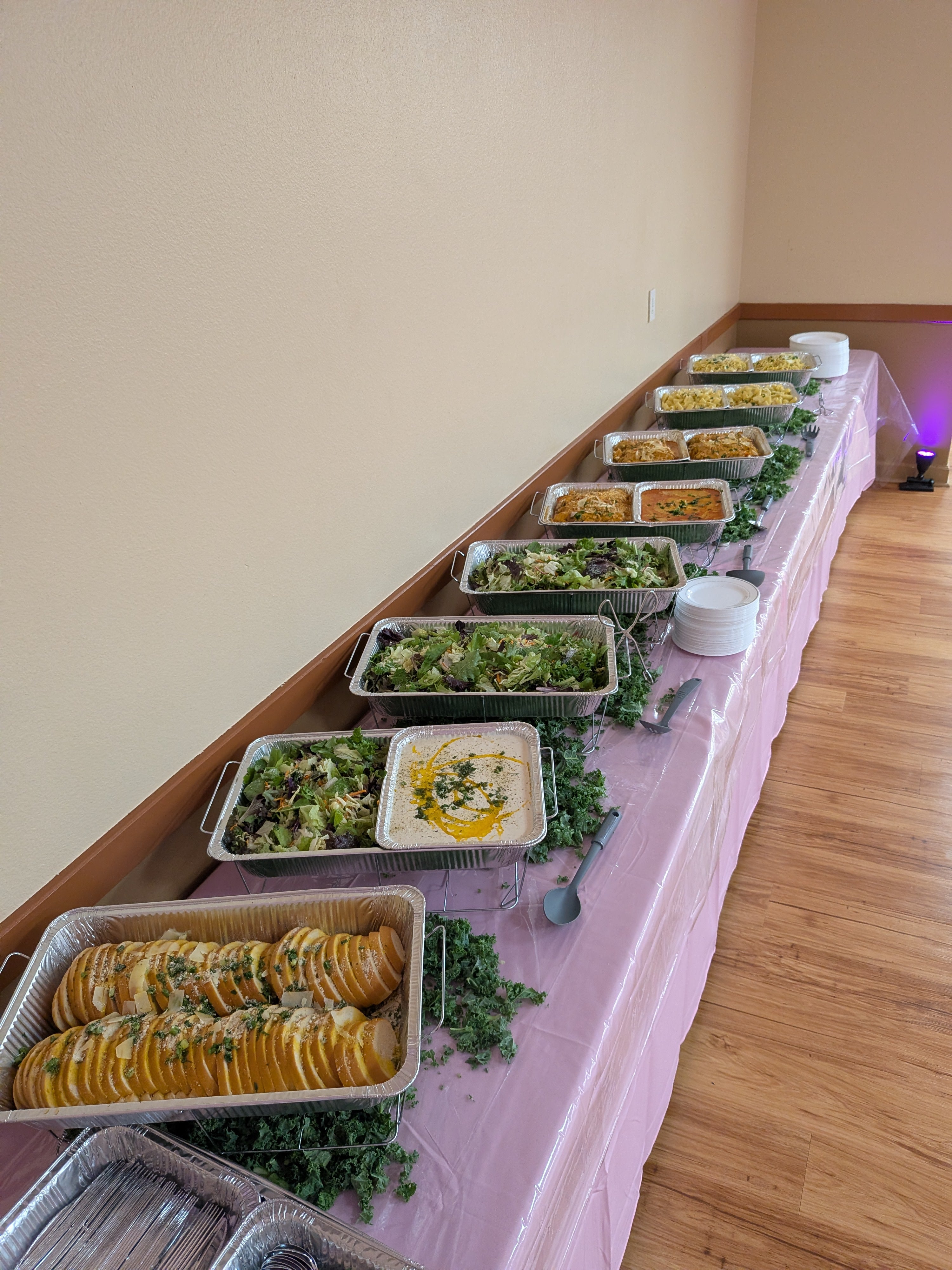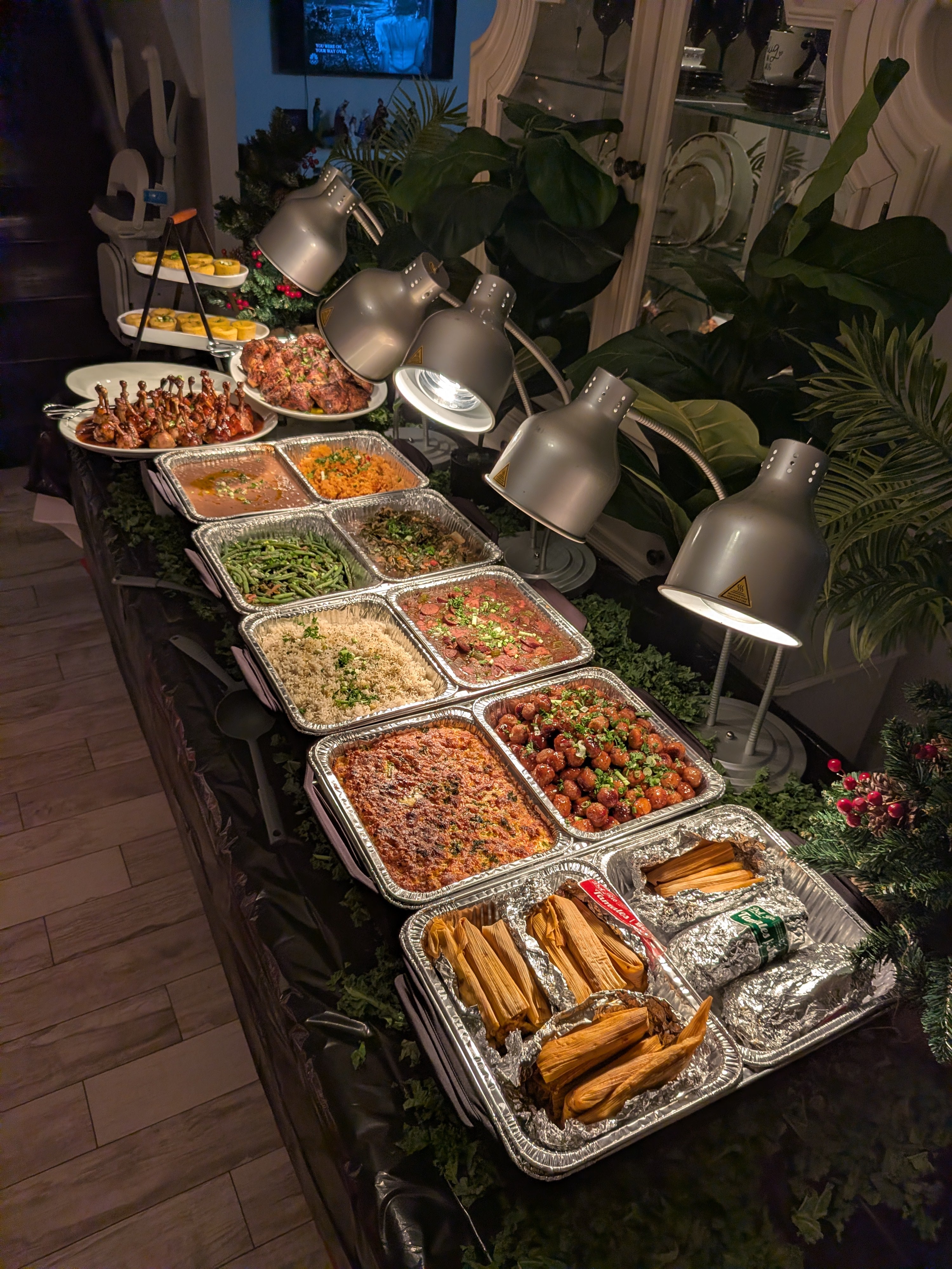 To ensure the food is properly maintained, Fears Kitchen offers delivery + setup services so it maintains the proper eating temperature. This includes wire racks, burners, and foil pans w/ lids.